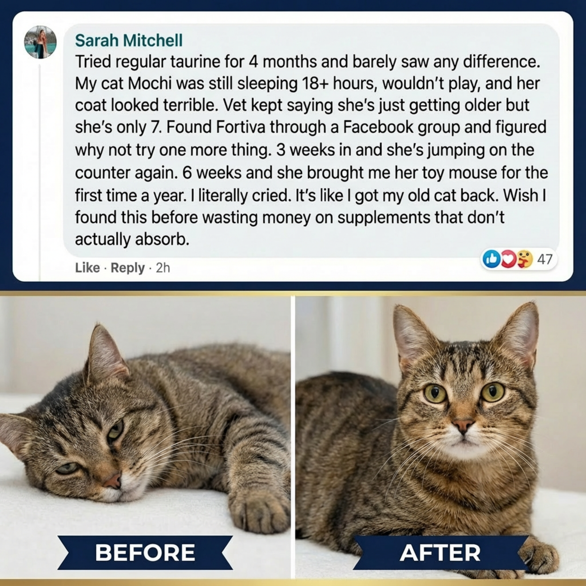 I feed high-quality grain-free food and thought I was doing everything right. Turns out the peas and lentils block taurine absorption. Who knew? My cat's energy completely changed. She went from lazy blob to actually chasing toys again. The food alone isn't enough.